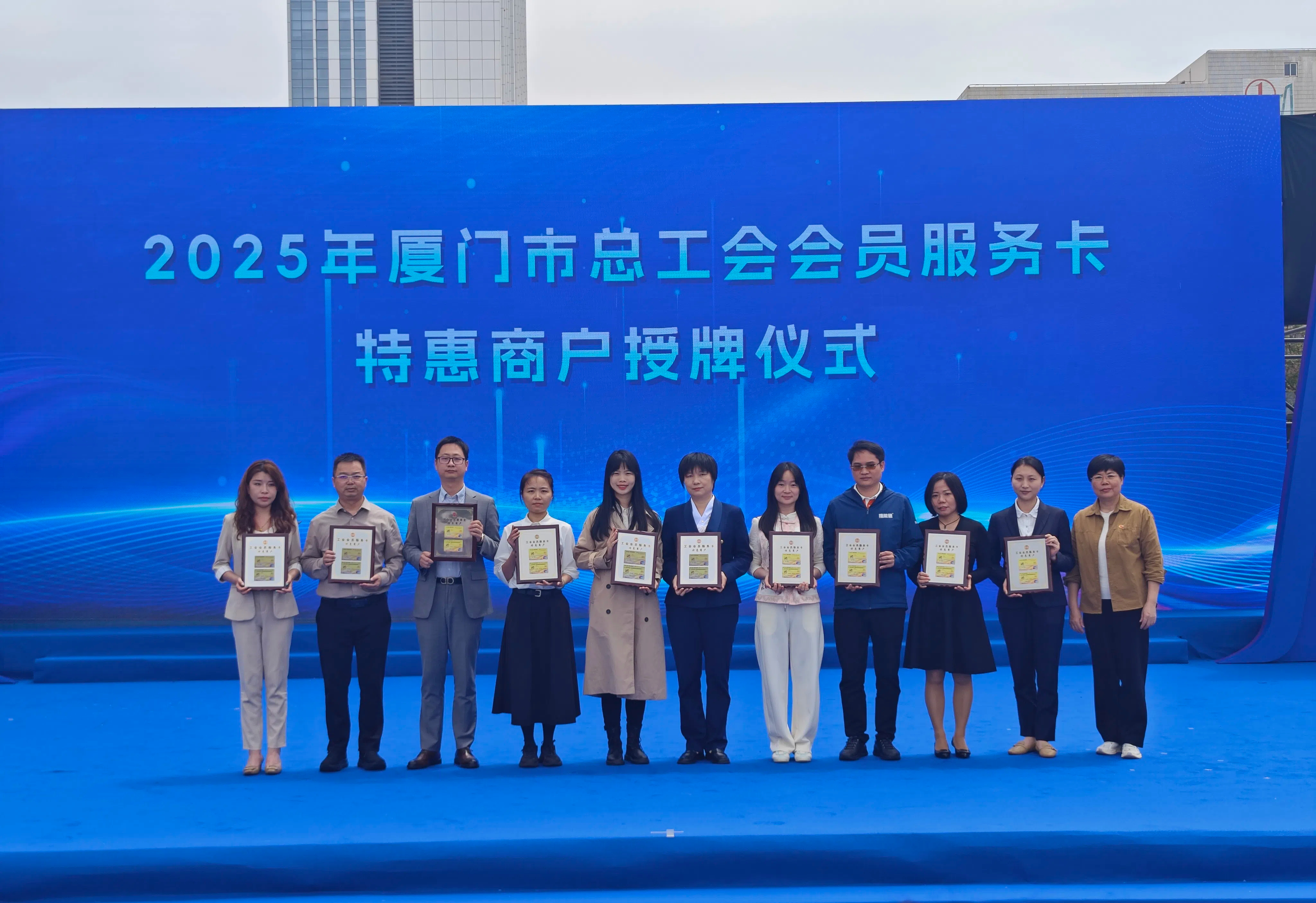 4月13日,由廈門市總工會指導、市機關事業工會聯合會主辦的“惠工聚益 共享美好”2025年工會集市活動在五一廣場盛大啟幕。廈門鷺燕大藥房作為2025年“工會會員服務卡特惠商戶”首批新簽約的10家優質企業正式獲得授牌,并攜多項健康惠民服務亮相。